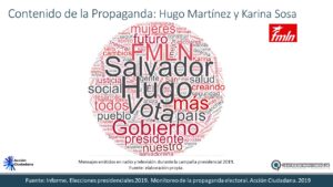 El informe contiene la estimación del valor de la propaganda electoral en radio, televisión, prensa escrita y vallas publicitarias así como el número de mensajes emitidos por los partidos políticos salvadoreños de octubre 2018 a enero 2019.
