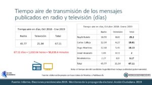 El Centro de Monitoreo de Transparencia y Democracia de Acción Ciudadana presentó el viernes 27 de septiembre de 2019 los resultados del resultados del informe: Elecciones presidenciales 2019. Monitoreo de la propaganda electoral.