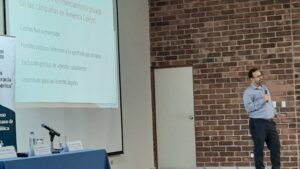 El foro también contó con la ponencia de docente de la Maestría en Ciencias Políticas de la UCA, Danilo Miranda, quien hizo un análisis, desde la perspectiva de la ciencia política, de la relación que existe entre la campaña electoral y el financiamiento de los partidos políticos y la importancia que se mejoren los niveles de transparencia para evitar que dinero de fuentes ilícitas, como el crimen organizado, financien las campañas electorales y/o a las candidaturas a cargos de elección popular.