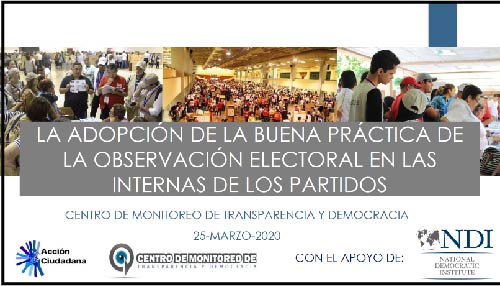 El Centro de Monitoreo de Transparencia y Democracia de Acción Ciudadana presentó el miércoles 25 de marzo de 2020 la propuesta: “la adopción de la buena práctica de la observación electoral en los partidos”.