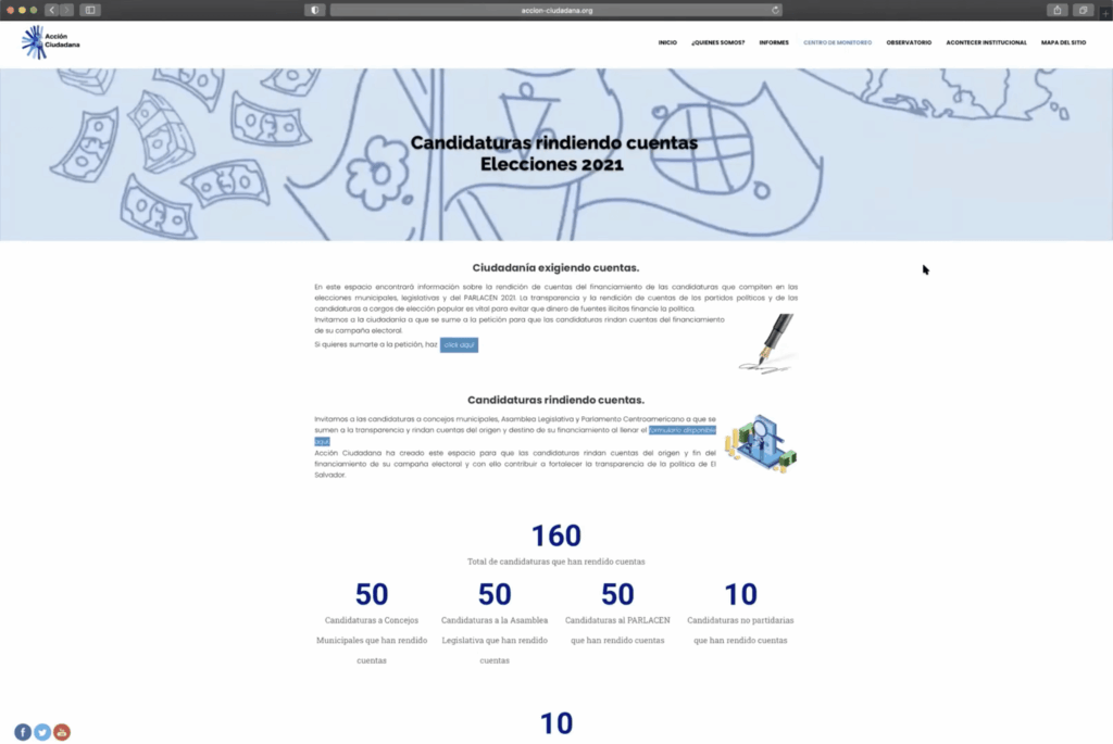 Debido a que no existe obligación legal para las candidaturas de rendir cuentas sobre sus ingresos y gastos en campaña electoral y, que, por ende, el Tribunal Supremo Electoral no las fiscaliza, Acción Ciudadana y la Fundación Nacional para el Desarrollo (FUNDE), con el propósito de promover la transparencia durante la actual campaña, hacen un llamado a candidatos y candidatas de las elecciones 2021 a comprometerse con una rendición de cuentas democrática para la ciudadanía.