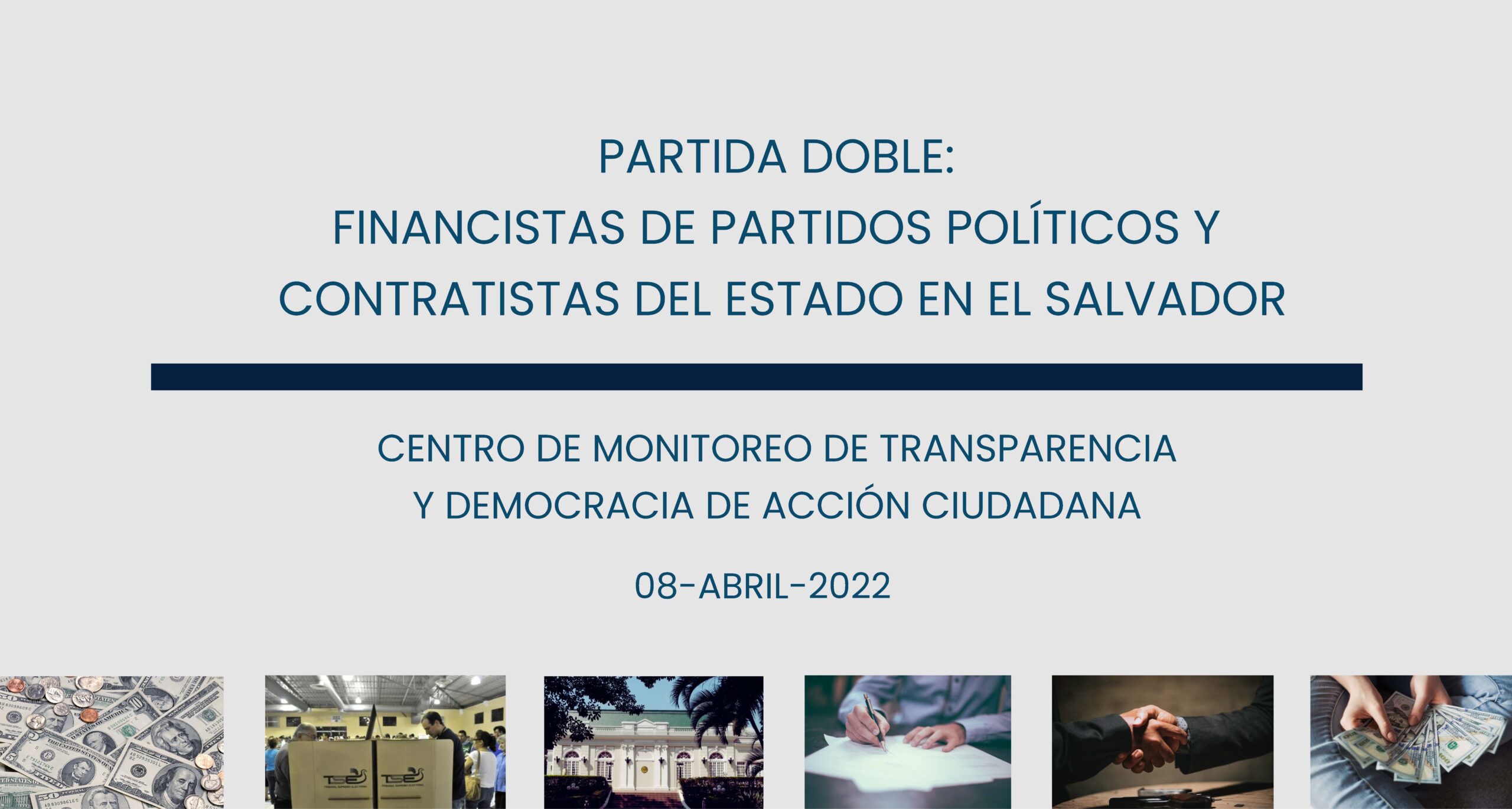 Acción Ciudadana, por medio del Centro de Monitoreo de Transparencia y Democracia, en seguimiento a la contraloría del financiamiento de la política salvadoreña que viene realizando desde el año 2016, presentó el viernes 08 de abril los resultados del informe: “Partida doble: Financistas de partidos políticos y contratistas del Estado en El Salvador”.