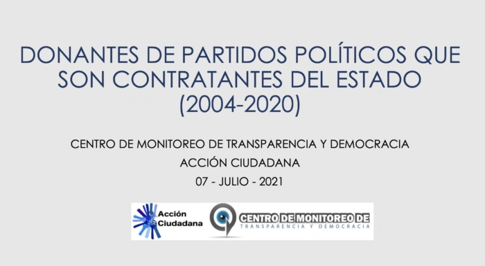 Recopilación de datos del Centro de Monitoreo de Transparencia y Democracia de Acción Ciudadana sobre donantes de partidos políticos contratistas del Estado.